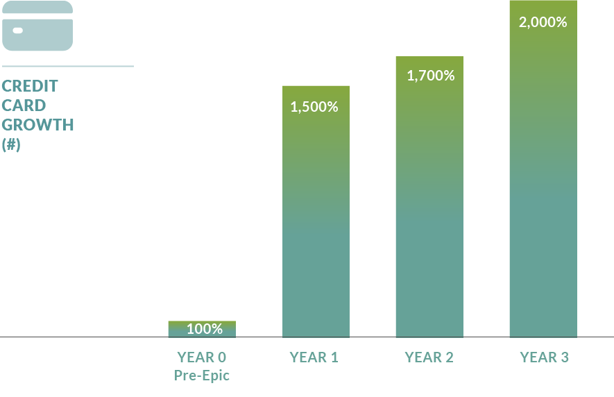 Drove 2,000% growth in new card acquisitions with no increase in fraud.