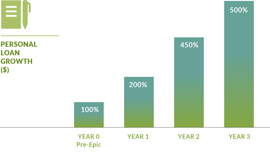 Created national brand recognition beyond footprint and achieved loan growth of 500% by year three.