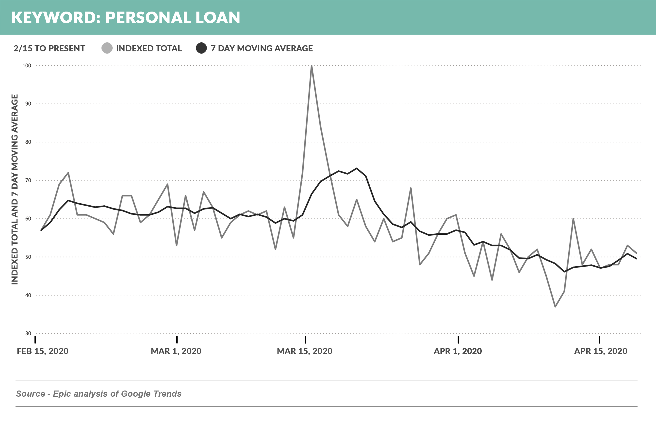 - Online search traffic for “personal loan” continues to trend downward