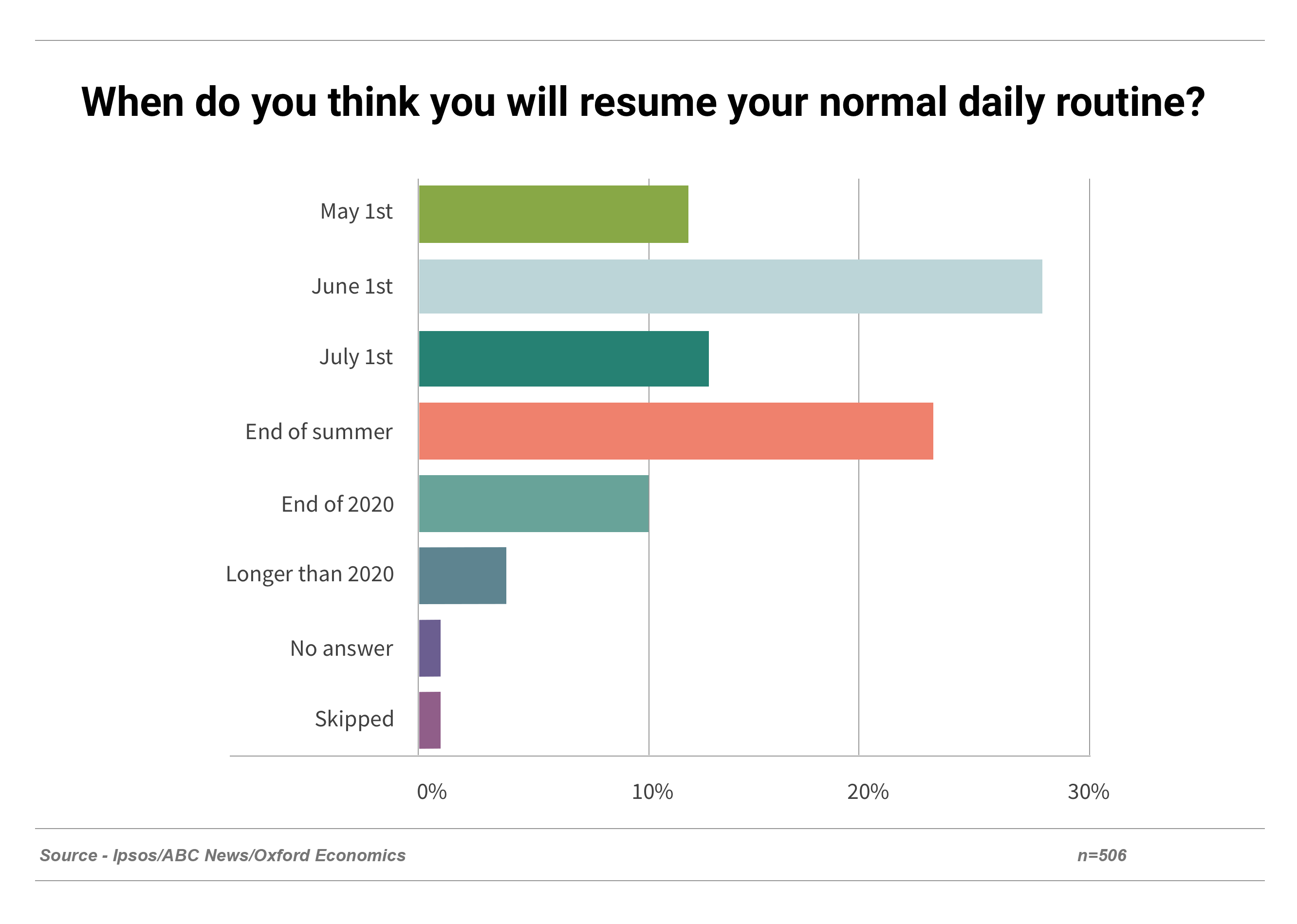 - Consumers have varying opinions about when they will “resume their normal daily routine”