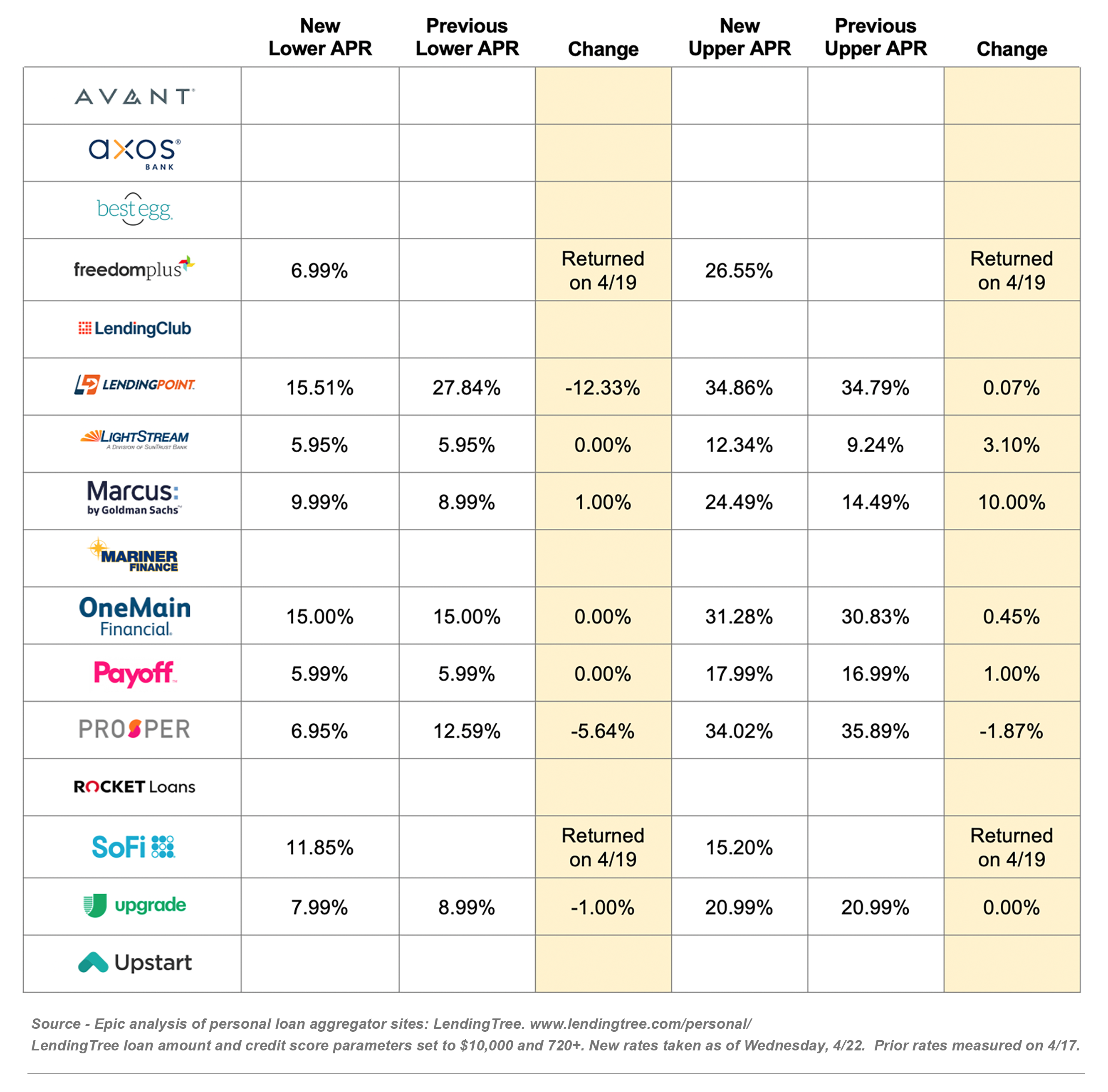 - Several lenders returned to the LendingTree table this week, but the trend of less activity by capital-markets-funded lenders continues