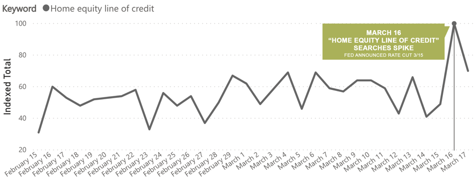 Online search volume for Credit Cards and Private Student Loans is up slightly.