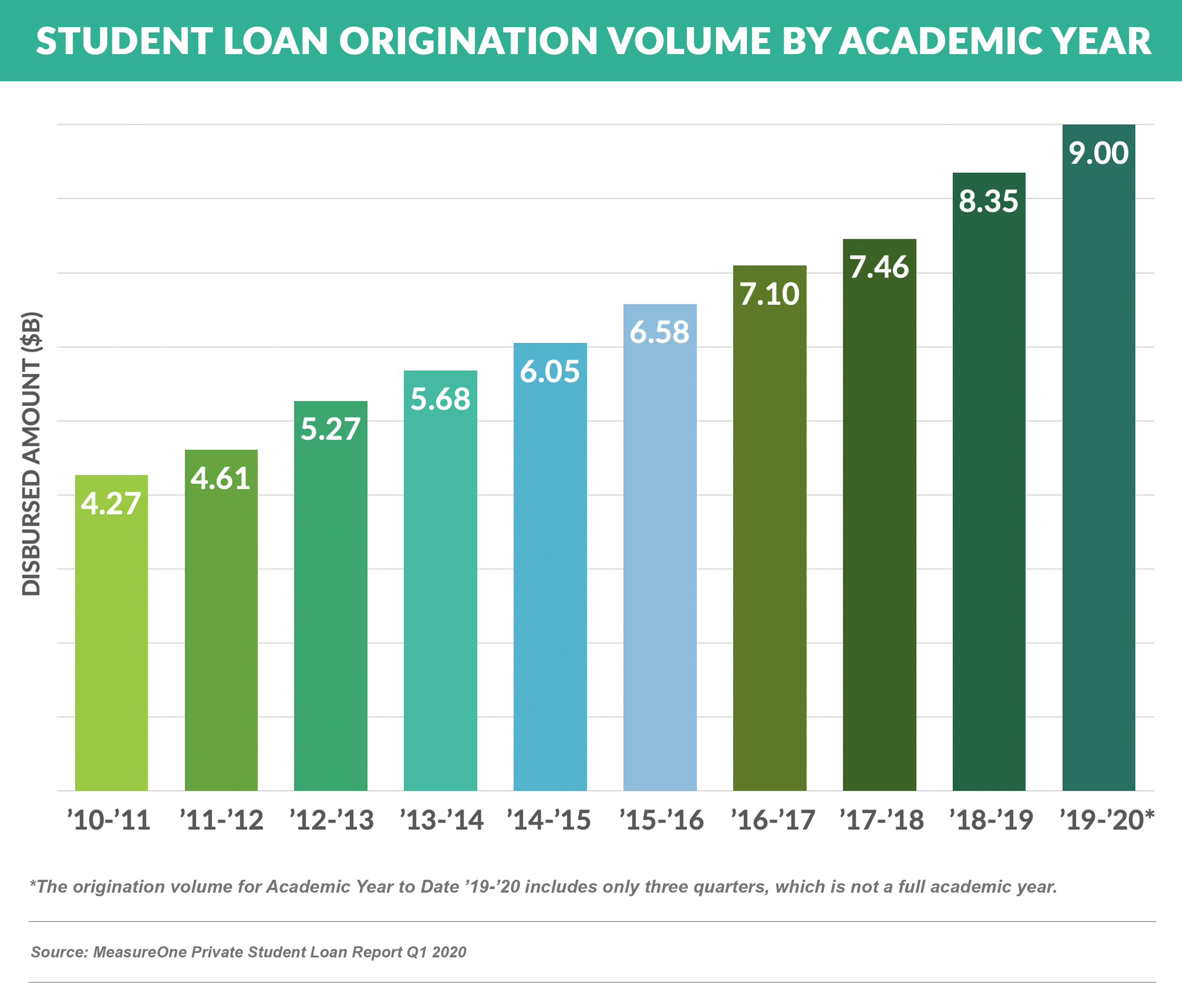 - Private student loan originations have doubled over the past decade